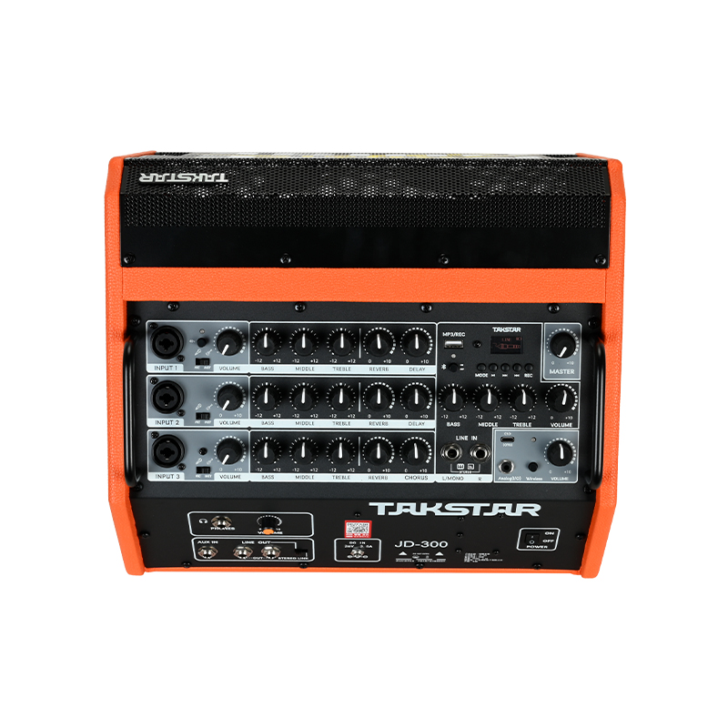 JD-300 là loa hát và chơi nhạc Takstar tích hợp sẵn amply, loa và mixer...chuyên dùng cho các ban nhạc, người chơi nhạc hoặc các hoạt động dã ngoại, pinnic