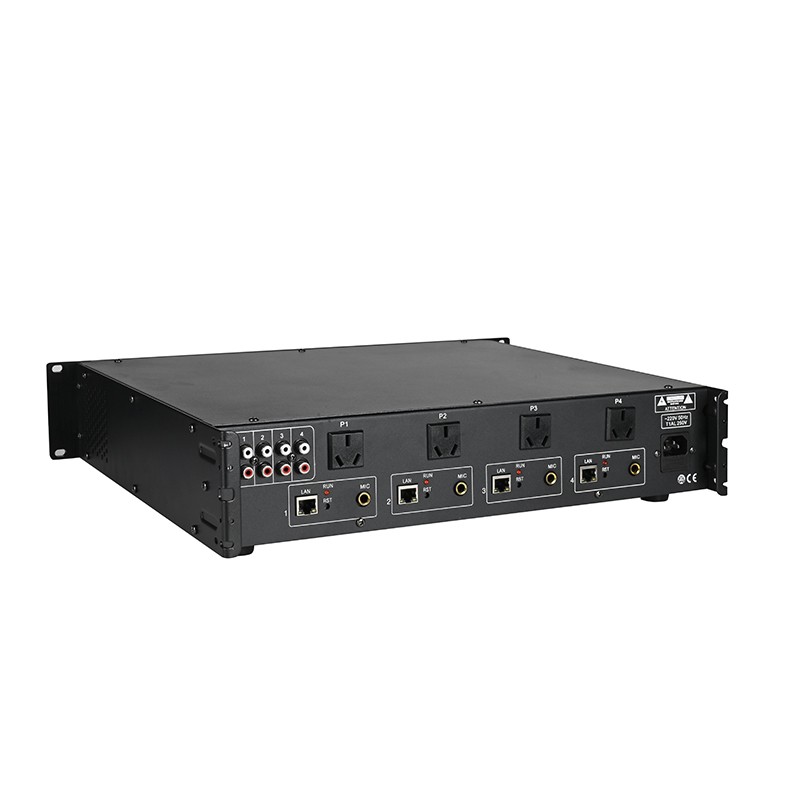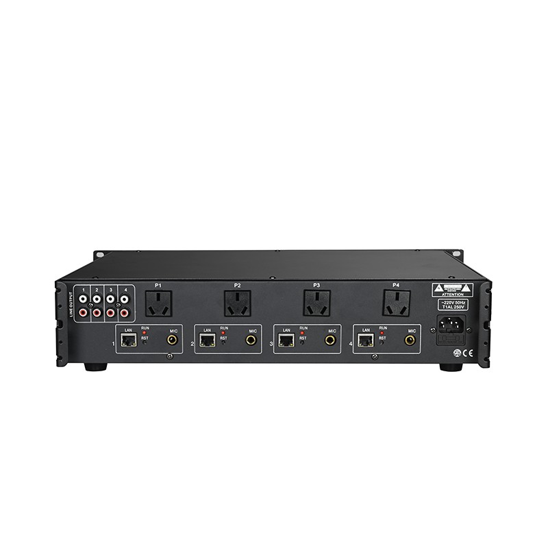 Tích hợp 4 kênh điều khiển nguồn điện AC 220V, công suất chịu tải tối đa 2000W; có thể tự động điều khiển nguồn của các thiết bị khuếch đại ngoài, hỗ trợ chức năng khởi động ưu tiên.